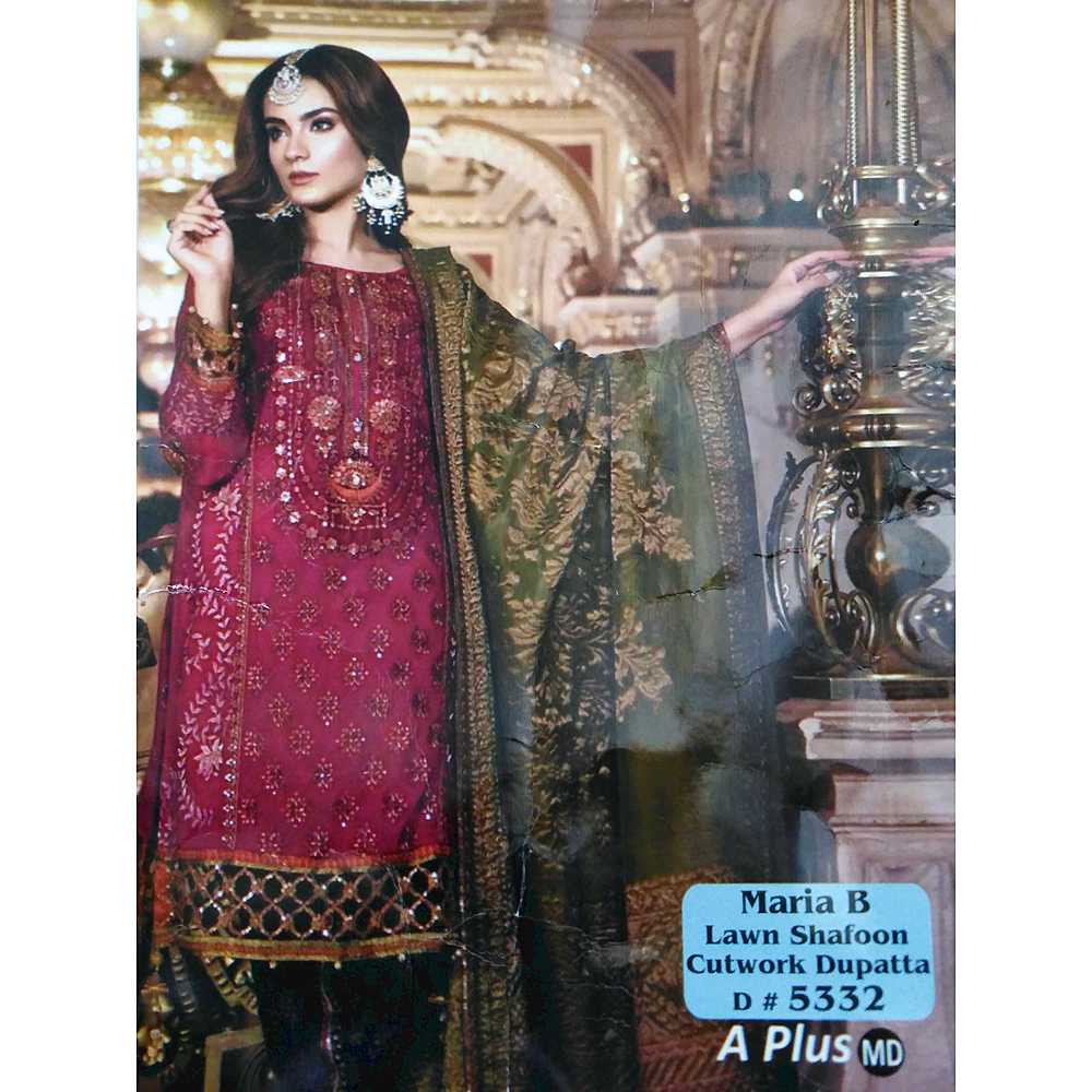 Maria B D-5332 3PC Lawn Suit Shafoon Cutwork Dupatta with embroidery Master Replica Collection 2019